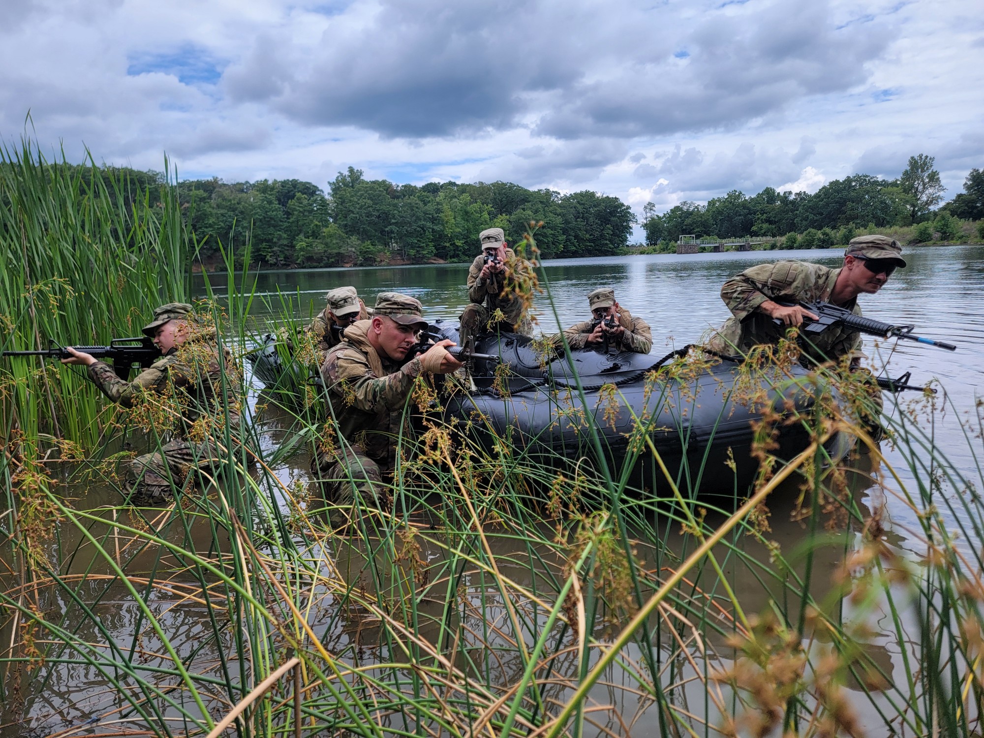 Soldiers from Charlie Troop, 1-104th Cavalry, 2nd Infantry Brigade Combat Team, 28th Infantry Division conduct waterborne operations training Aug. 4, 2024, on Marquette Lake at Fort Indiantown Gap as a part of their annual training. (U.S. Army National Guard photo by Sgt. 1st Class Dylan Pitetti)